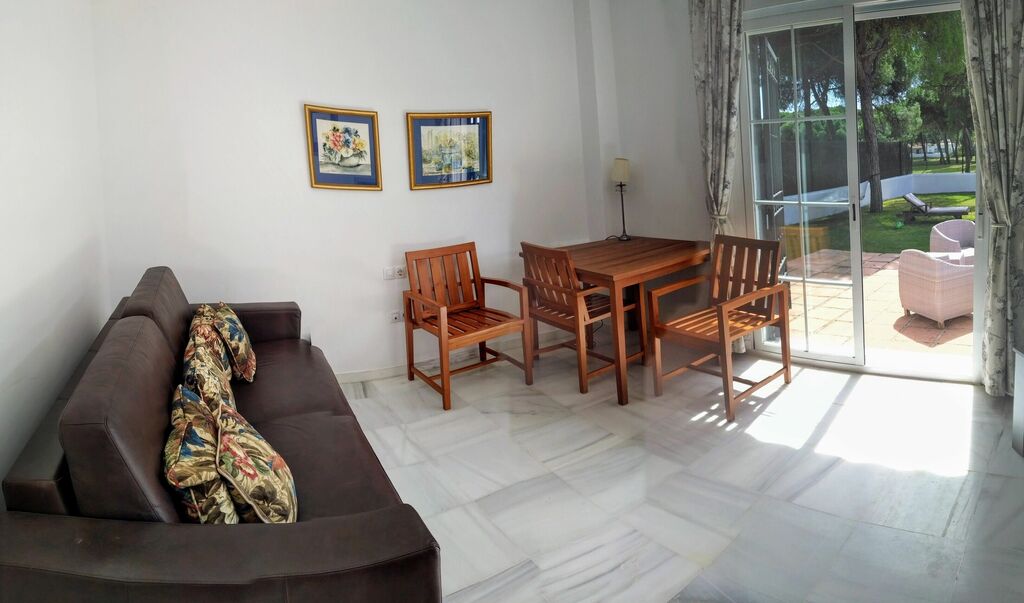 2 Guests in a king size double bed fitted wardrobes and a large terrace overlooking the pool and Golf Course